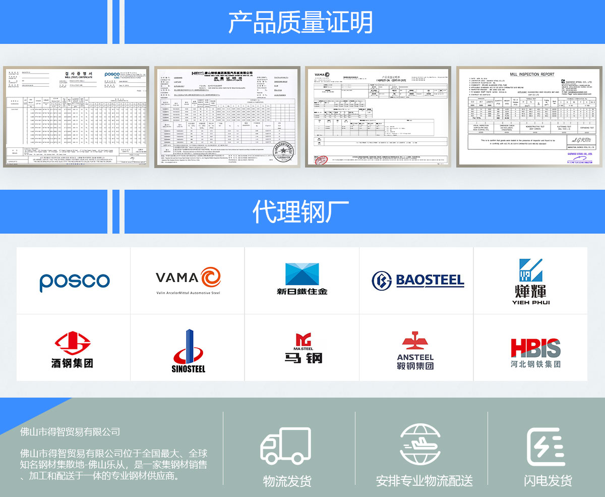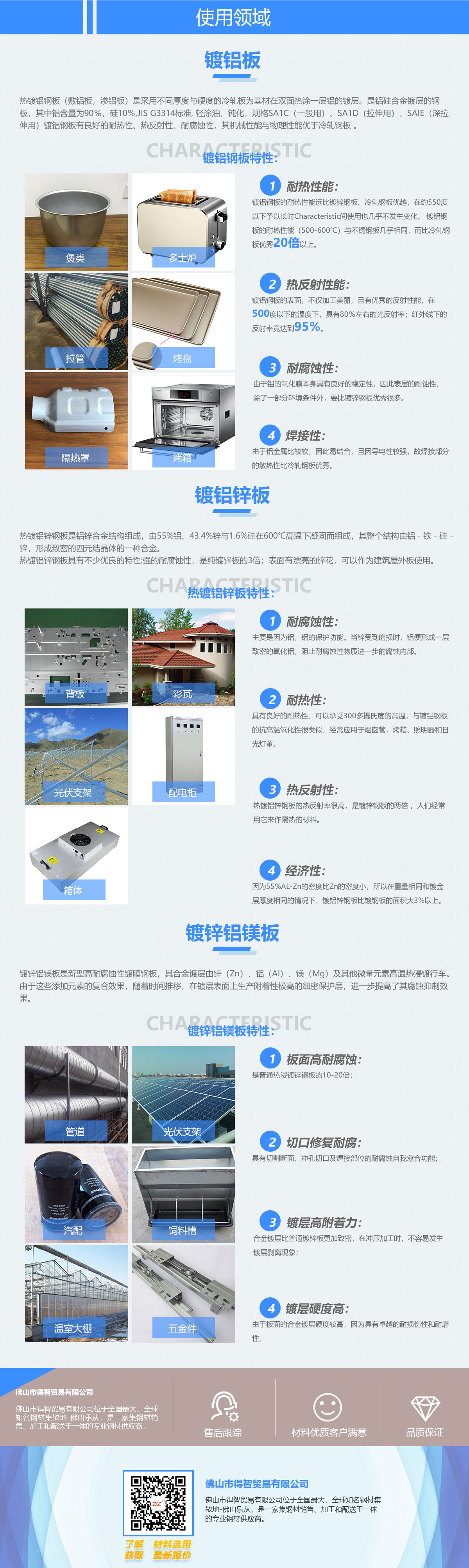 您好!我們是佛山市得智貿(mào)易有限公司,位于佛山樂從—全國最大,全球知名的鋼材集散地!我們長年供應(yīng)進(jìn)口及國產(chǎn)鍍鋁鋼板、鍍鋁鋅板、鍍鋅鋁鎂板、高鍍層鍍鋅板等等,是韓國浦項(xiàng)、華菱安賽樂、寶鋼、鞍鋼蒂森以及攀鋼、酒鋼各大品牌的重要代理商。